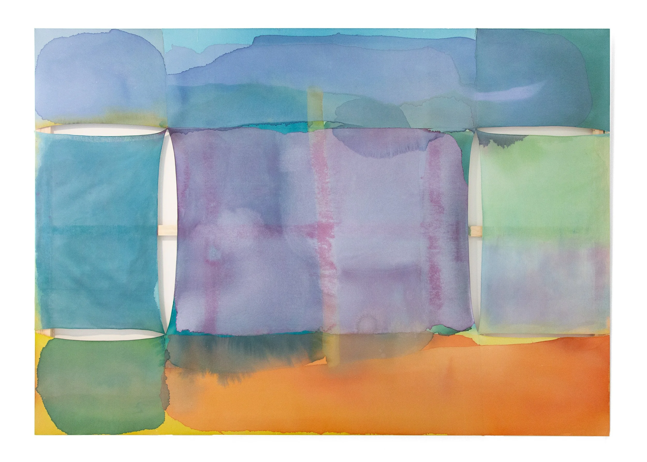 acrylic on sewn Kwangmok (Korean muslin), cheesecloth and wooden frame