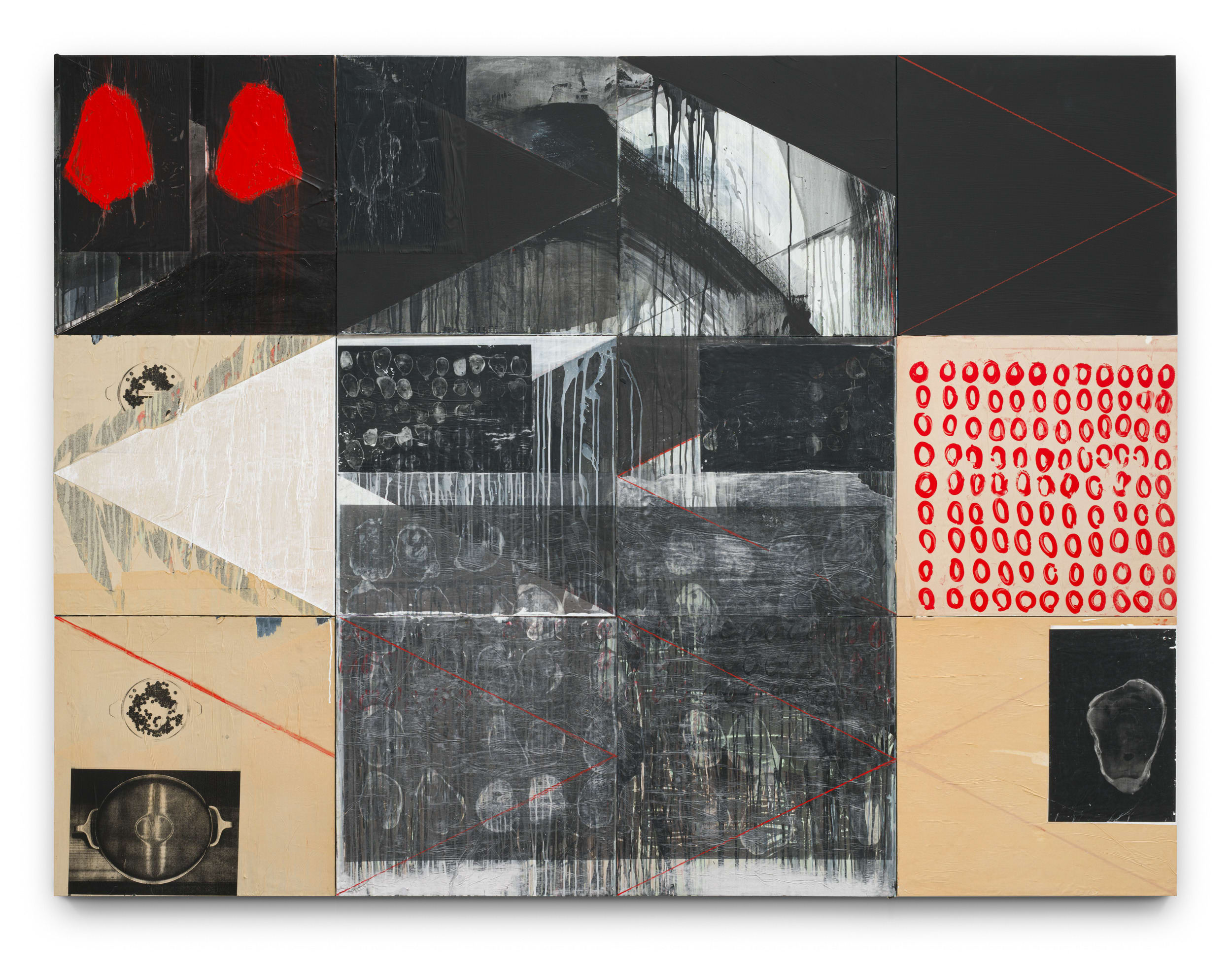 un-ring bells, 2024acrylic, graphite, Xerox transfer on panel board72 x 96" -