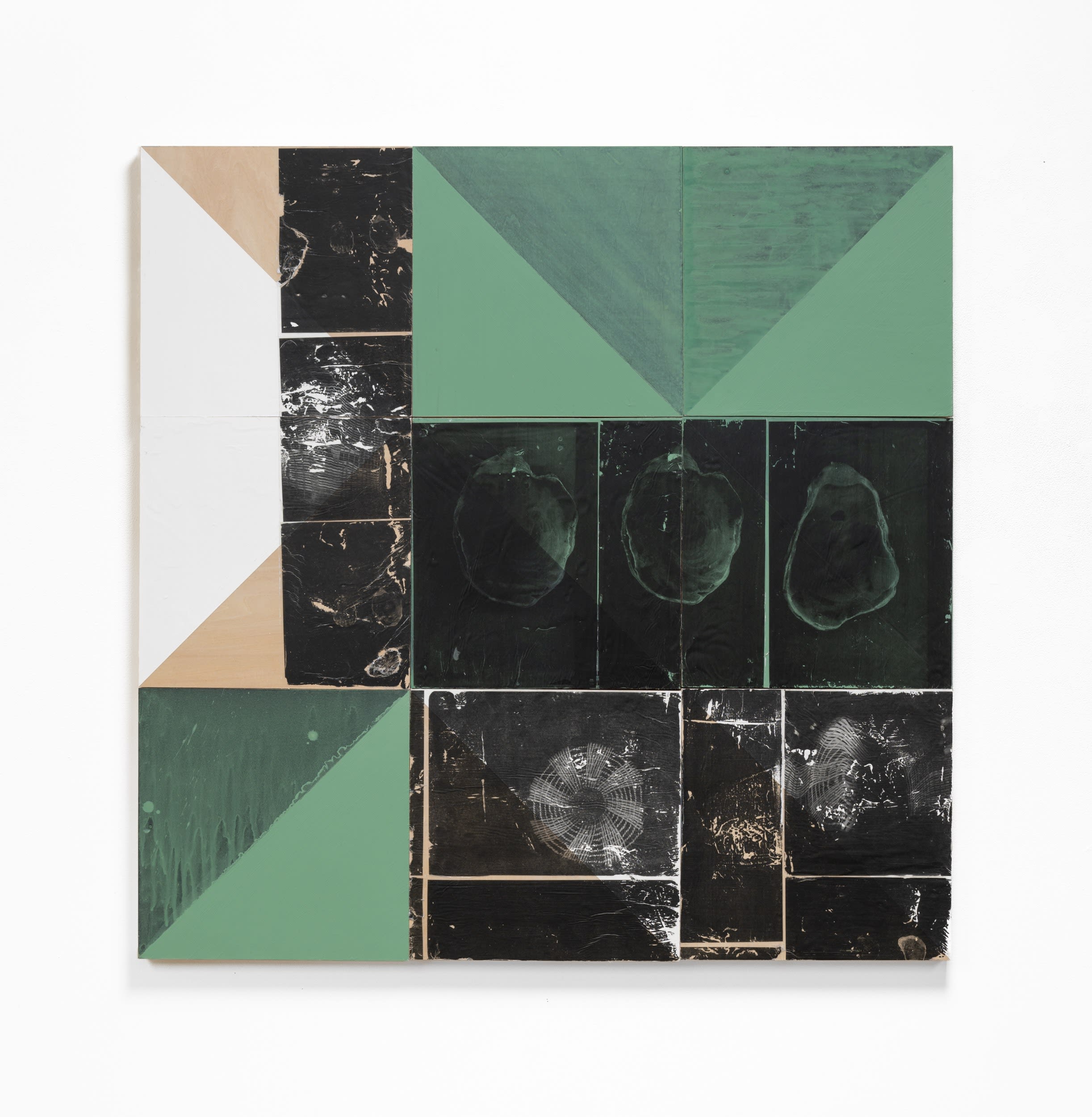 they would prefer to be a cloud, fastened to the rock, 2013-2022acrylic, graphite, Xerox transfer on panel board16 x 16" each panel