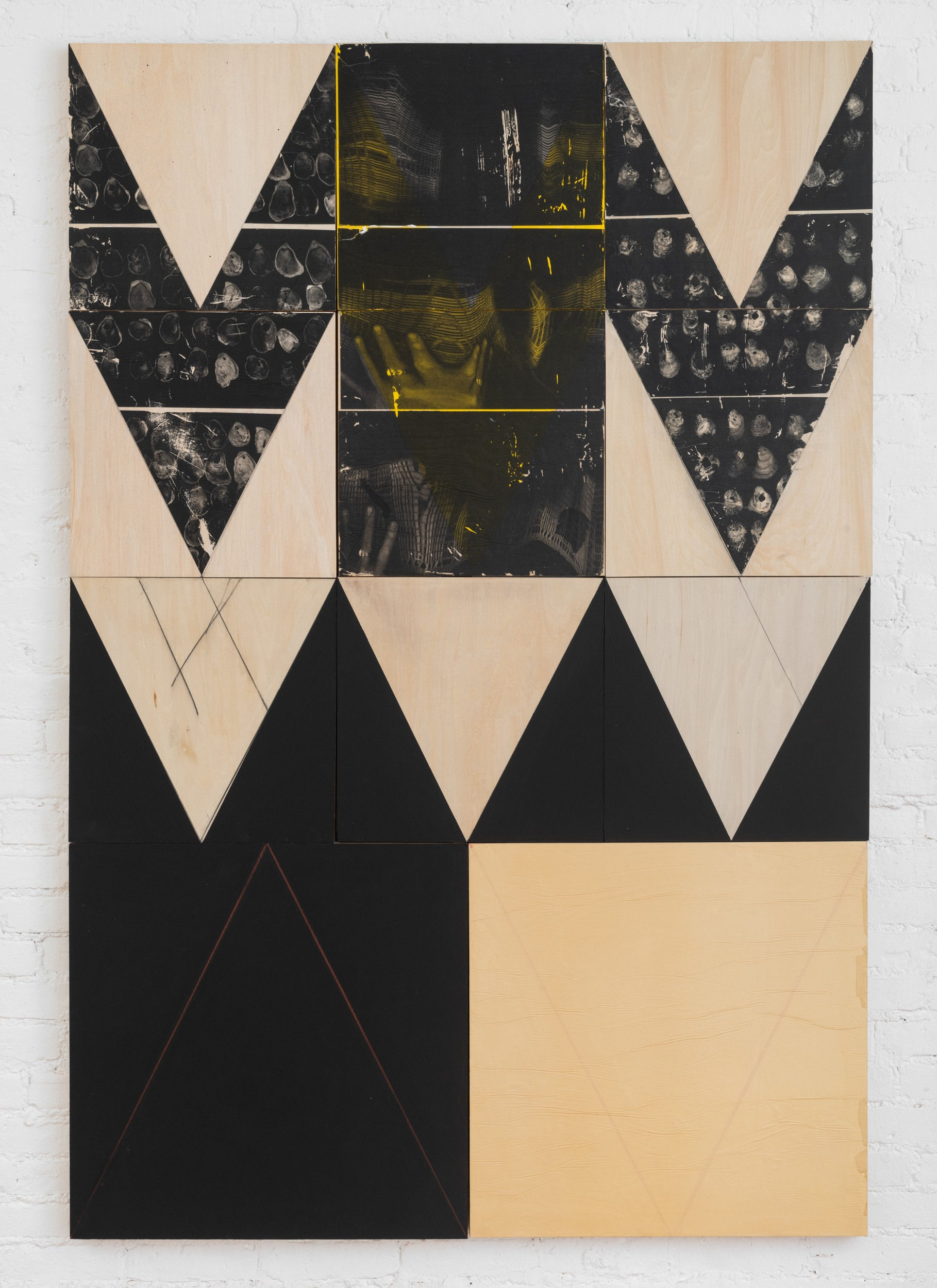 On view at the New York Armory Show, the joint presentation debuts a selection of the artist’s newest paintings and sculptures. The booth is anchored by a selection of the artist’s large multi-panel artworks. Inspired by Indigenous weaving patterns, Siestreem’s painting practice features dynamic black and white geometric shapes overlaid by gestural paint and juxtaposed with xeroxed photo transfers of extinct Indigenous oyster shells and a basket woven by the artist, offering a tribute to the Indigenous worldview that plants, animals, and the elements are our relatives.