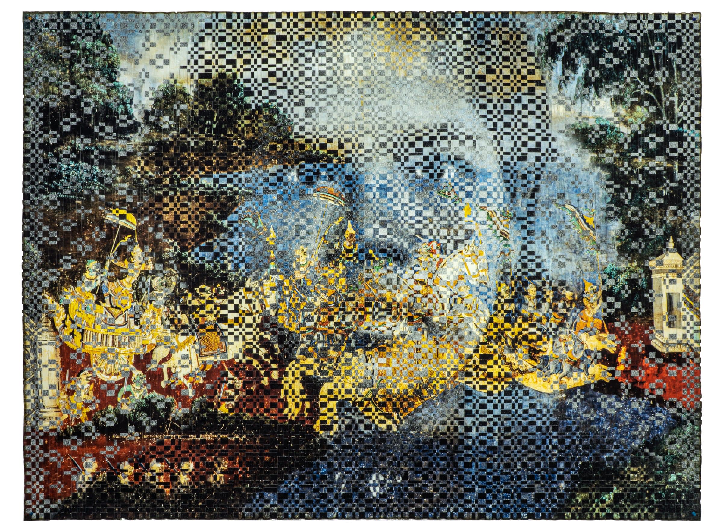 The result for Lê is a new body of work that physically interlaces these two narratives from the past—the rich cultural legacy of the Cambodian empire and the more recent, tragic history of the Khmer Rouge—in a way that is evocative of the Reamker itself, a metaphorical tale of the complex push-pull between good and evil in the world.